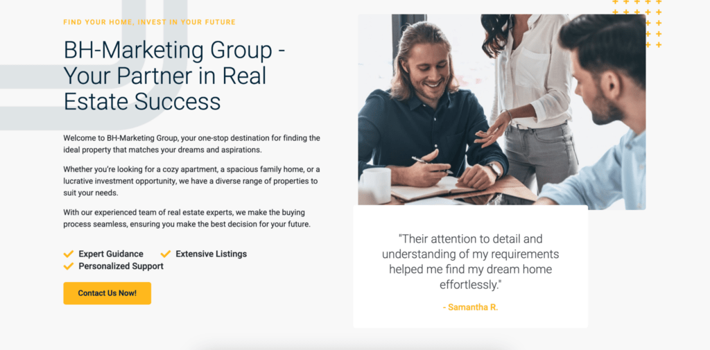 BH-Marketing Group’s home-buying services are centered around finding the perfect home for their clients. They provide personalized property searches, negotiate deals, and offer insights into different neighborhoods and market trends. Their extensive network and knowledge of the market ensure that buyers are well-informed and supported throughout the purchasing process.