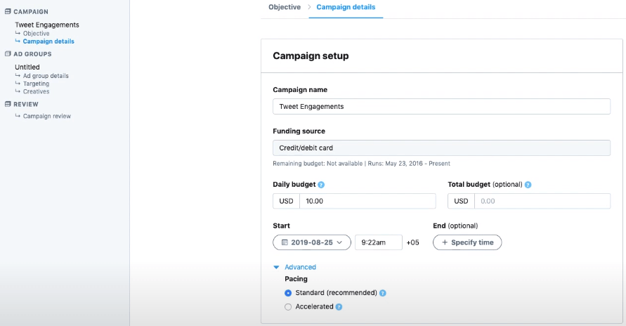 - Select Creatives: Don’t let the name scare you, creatives simply refer to the tweets you’re promoting. Make sure they are grammatically correct, easy-to-read, and easy-to-understand. If possible, hire a copywriter to prepare a great pitch for you.