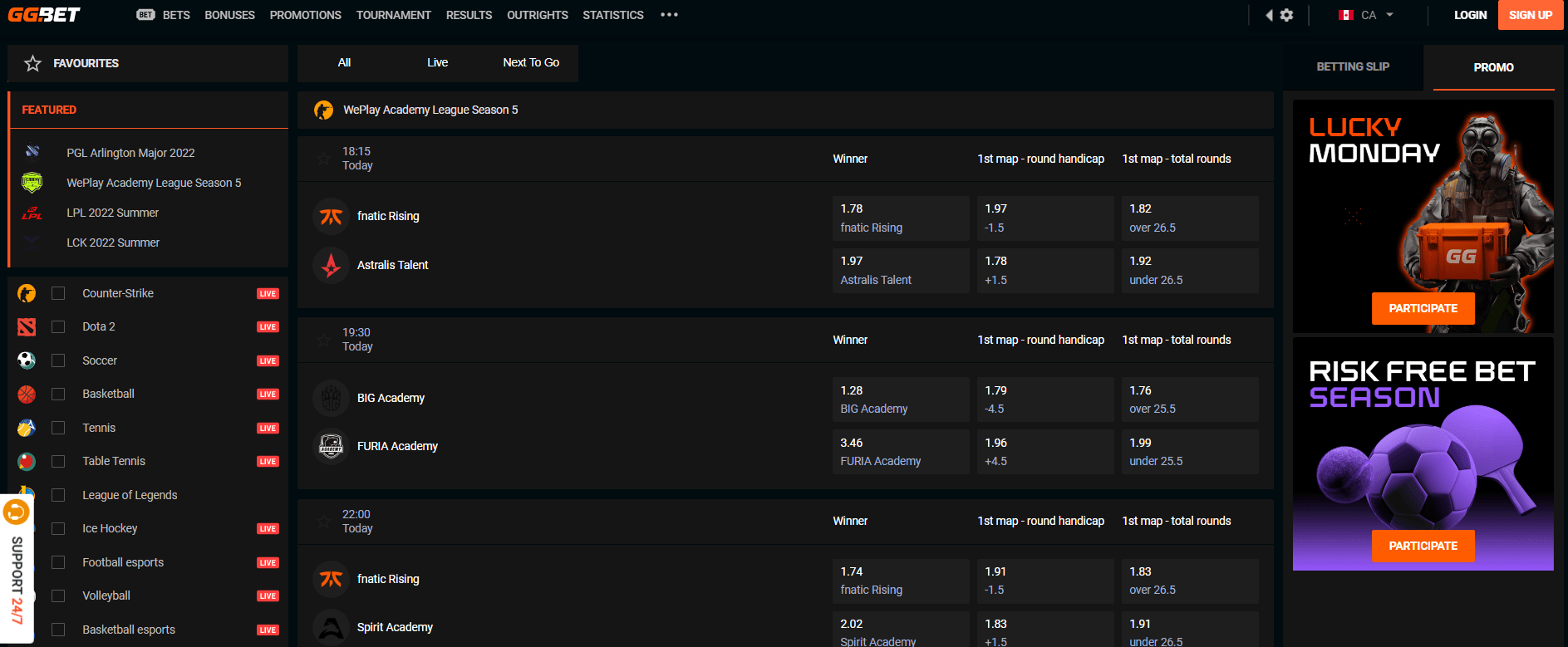 GGBet Canadian is quite a popular betting company that occupies a leading position in the ratings of eSports bookmakers. All the most popular gaming disciplines are present. Good odds and bonuses are placed here. It is possible to watch online broadcasts inside the platform. Bonuses are also provided for new players.